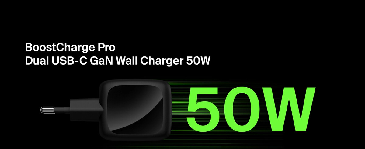 This charger has GaN technology, which makes it possible to deliver 50W in a small format. It can be used to charge most laptops when one port is used, or charge two smartphones at the same time. For professionals who are often on the go and only want to carry a charger for devices such as a mobile phone, laptop, tablet, headphones and Apple Watch, this lightweight model that is easy to store is ideal. With two USB-C ports, it is suitable for every need.