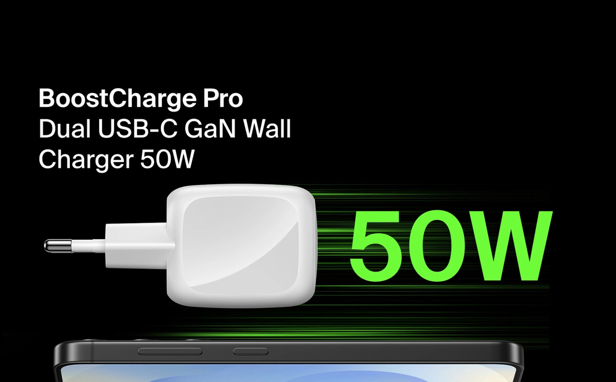 This charger has GaN technology, which makes it possible to deliver 50W in a small format. It can be used to charge most laptops when one port is used, or charge two smartphones at the same time. For professionals who are often on the go and only want to carry a charger for devices such as a mobile phone, laptop, tablet, headphones and Apple Watch, this lightweight model that is easy to store is ideal. With two USB-C ports, it is suitable for every need.
