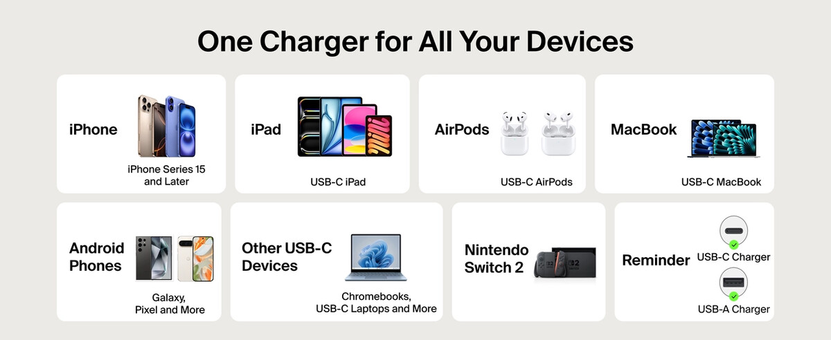 - Universal compatibility to charge a wide array of USB-C powered devices — from smartphones to laptops — during your drive