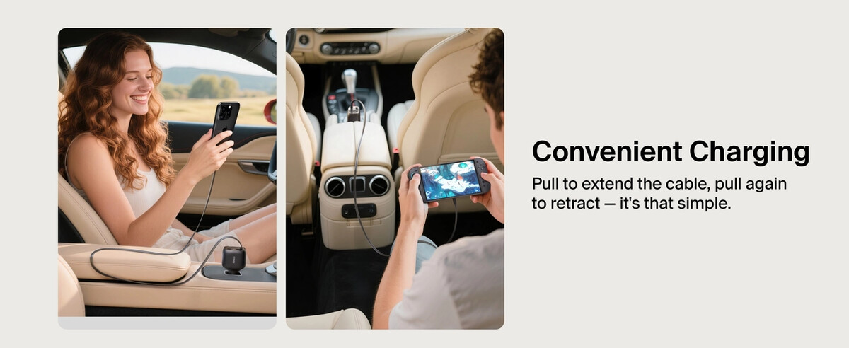 - Keep your car tidy and tangle-free with a retractable 75cm USB-C cable