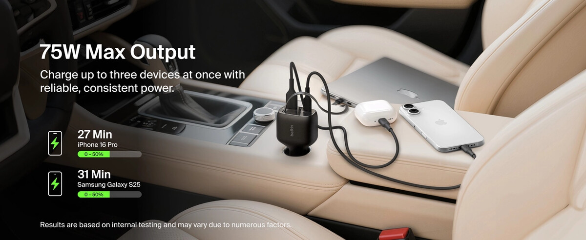 - Charge your iPhone 16 Pro from 0-50% in 27 minutes or Samsung S25 phone from 0-50% in 31 minutes