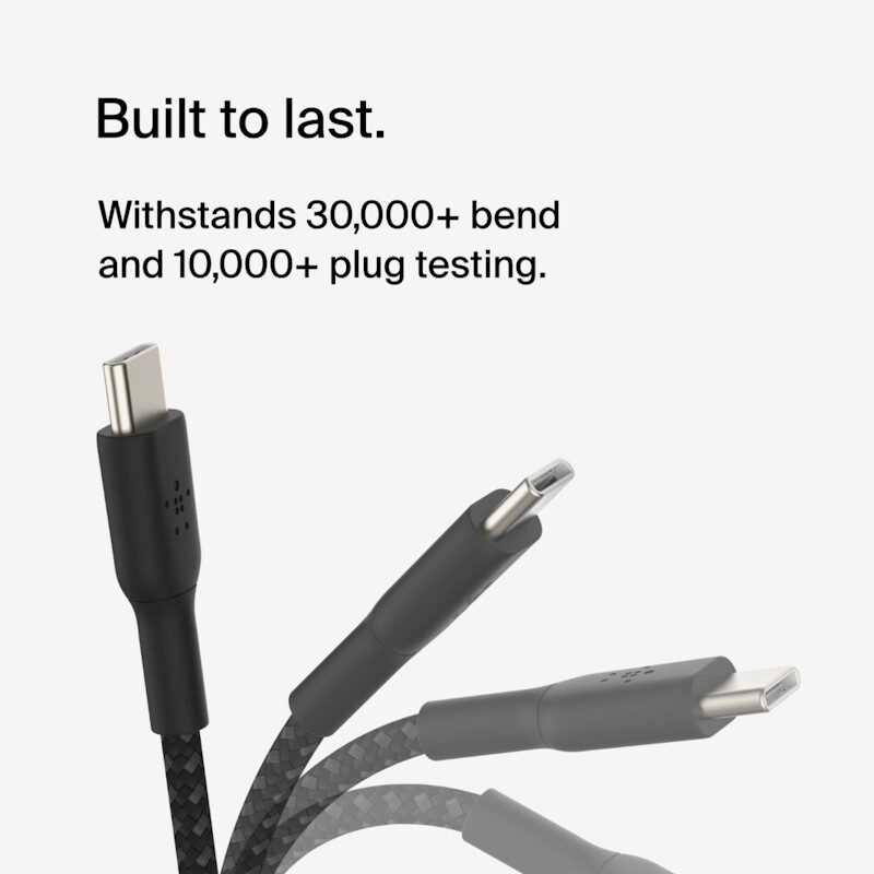 Tested to survive 30,000 bends* and made with double braided nylon, these USB-C fast charge cables stand up to the most rigorous daily use so you don’t have to keep replacing them. And with a braided nylon exterior they’ve got the sturdiness to withstand just about anything.