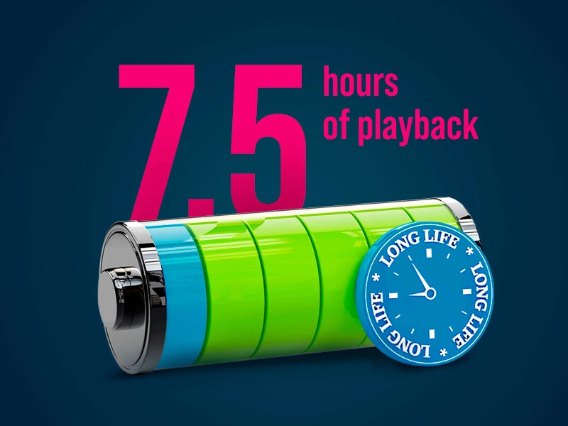 The OnRun 11 Sport CNS-TWS11R utilizes a high-capacity battery that delivers impressive playtime. Enjoy up to 7.5 hours of continuous music playback on a single charge, and the charging case provides an additional 18 hours of power.