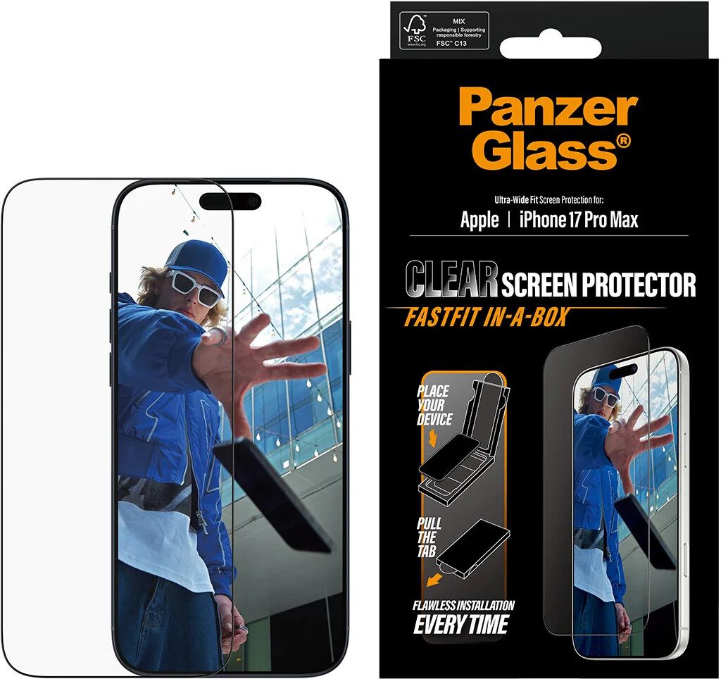 PanzerGlass® Screen Protector iPhone 17 Pro Max | Ultra-Wide Fit w. FASTFIT IN-A-BOX