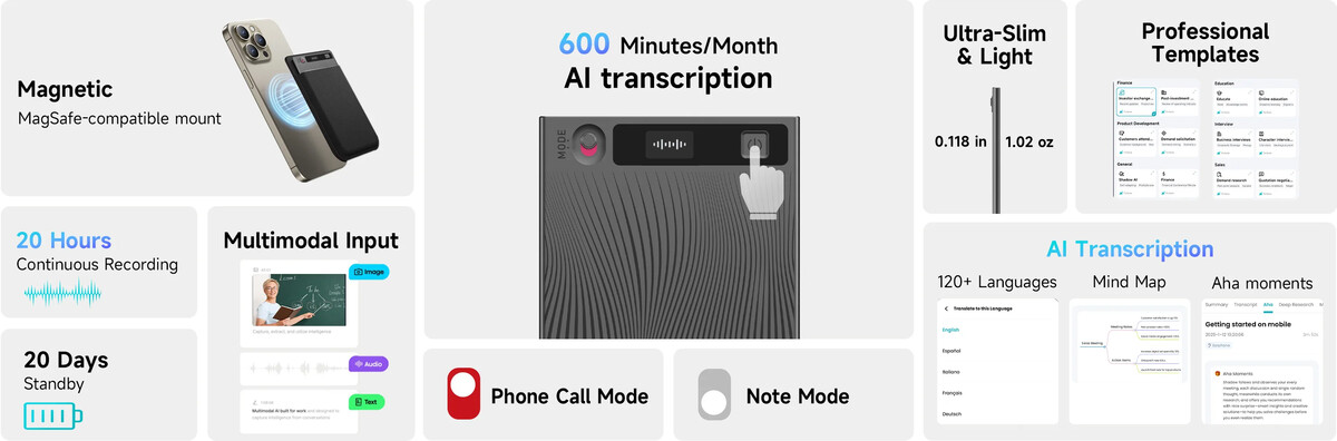Connects magnetically to your smartphone for seamless call recording.